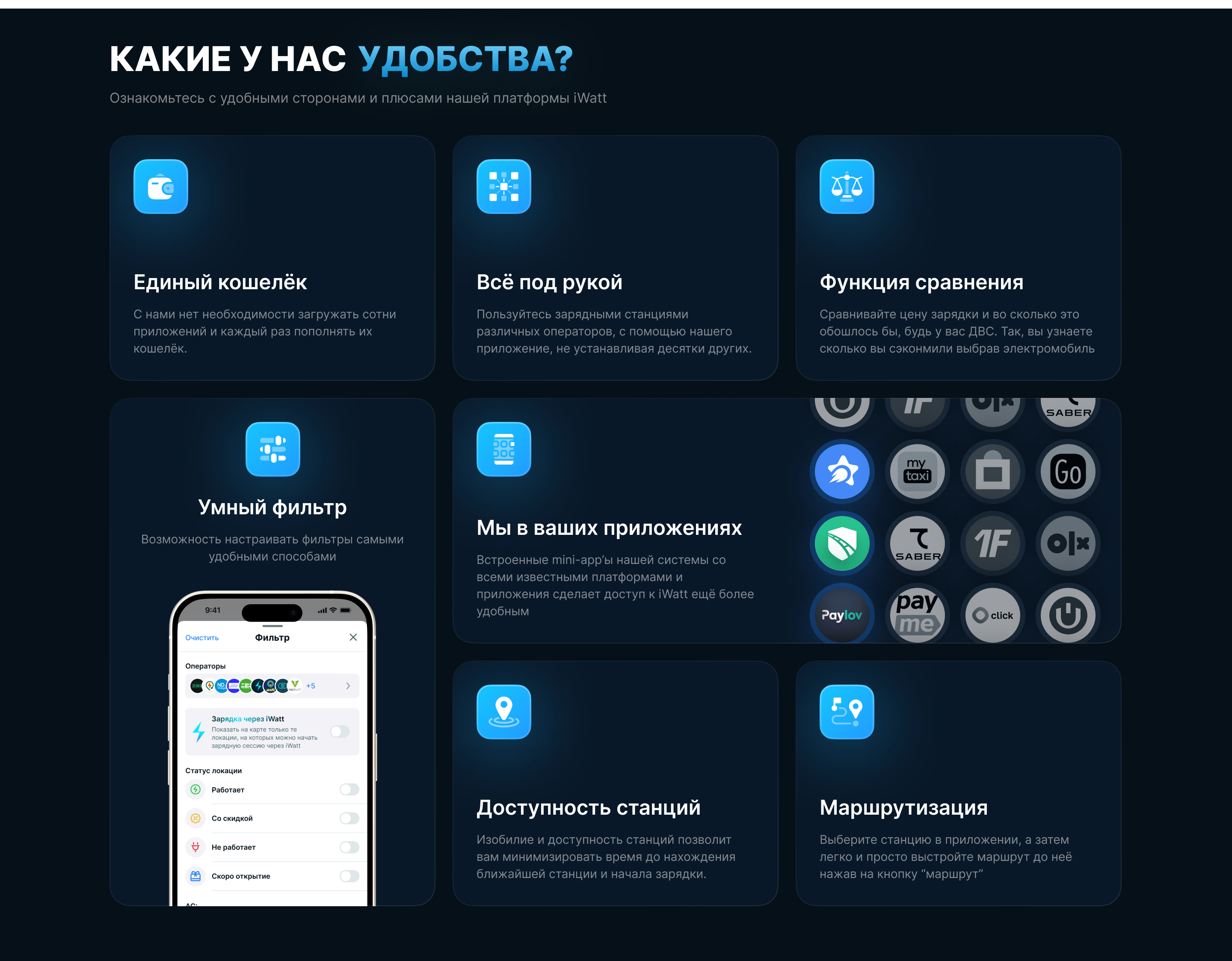IWATT Tech set out to simplify EV charging for users across multiple providers. The goal was to create a centralized, intuitive platform that merges real-time data, smart filtering, and seamless station access — all within a modern, reliable interface.