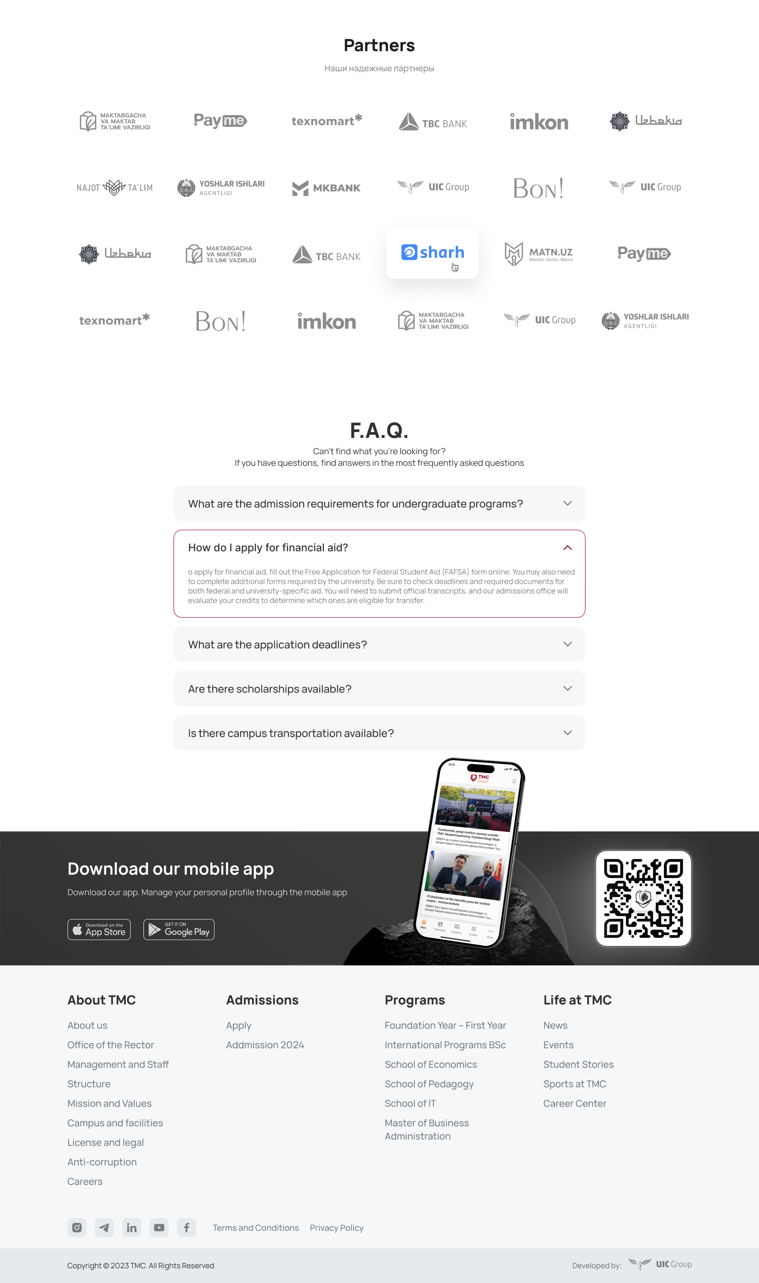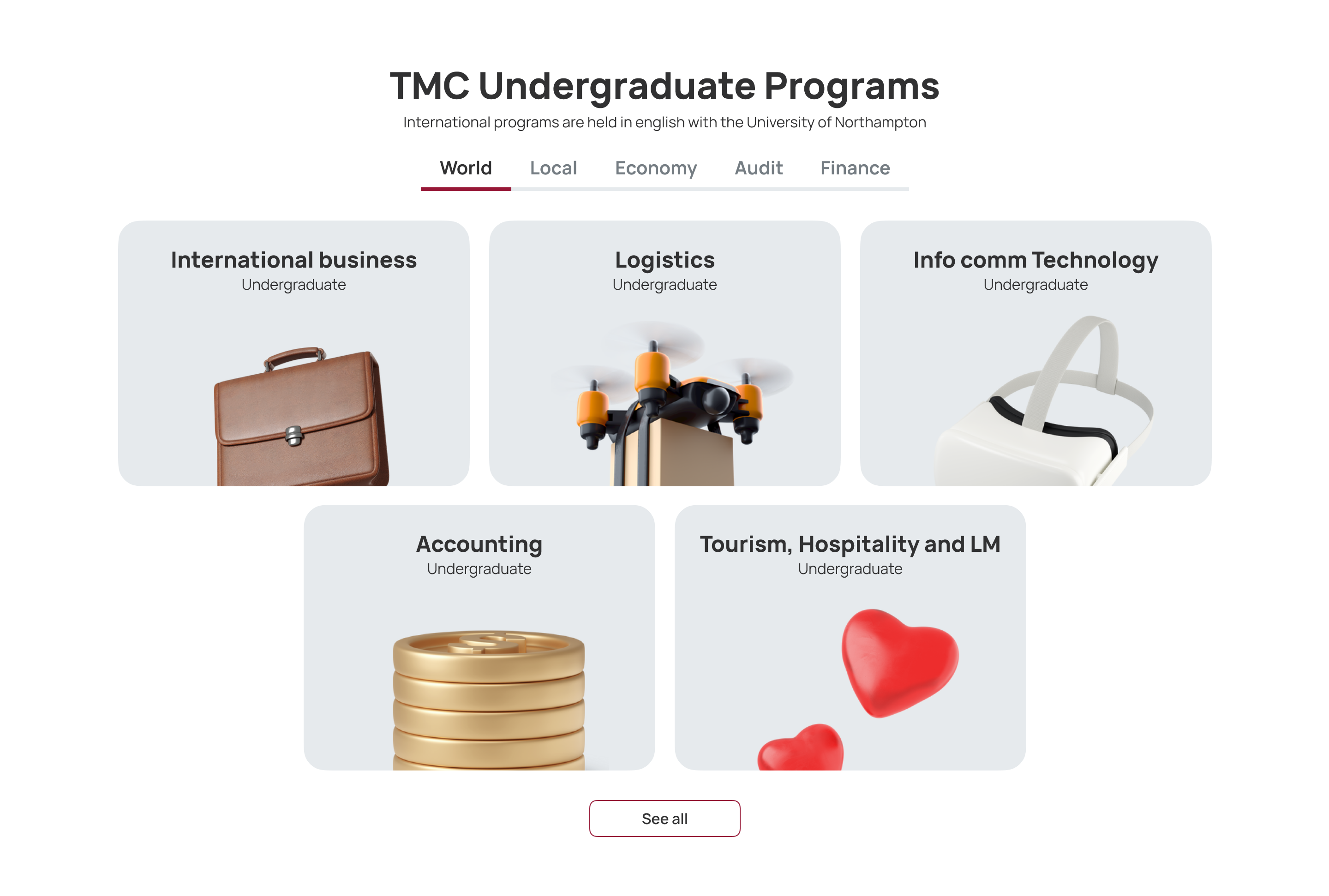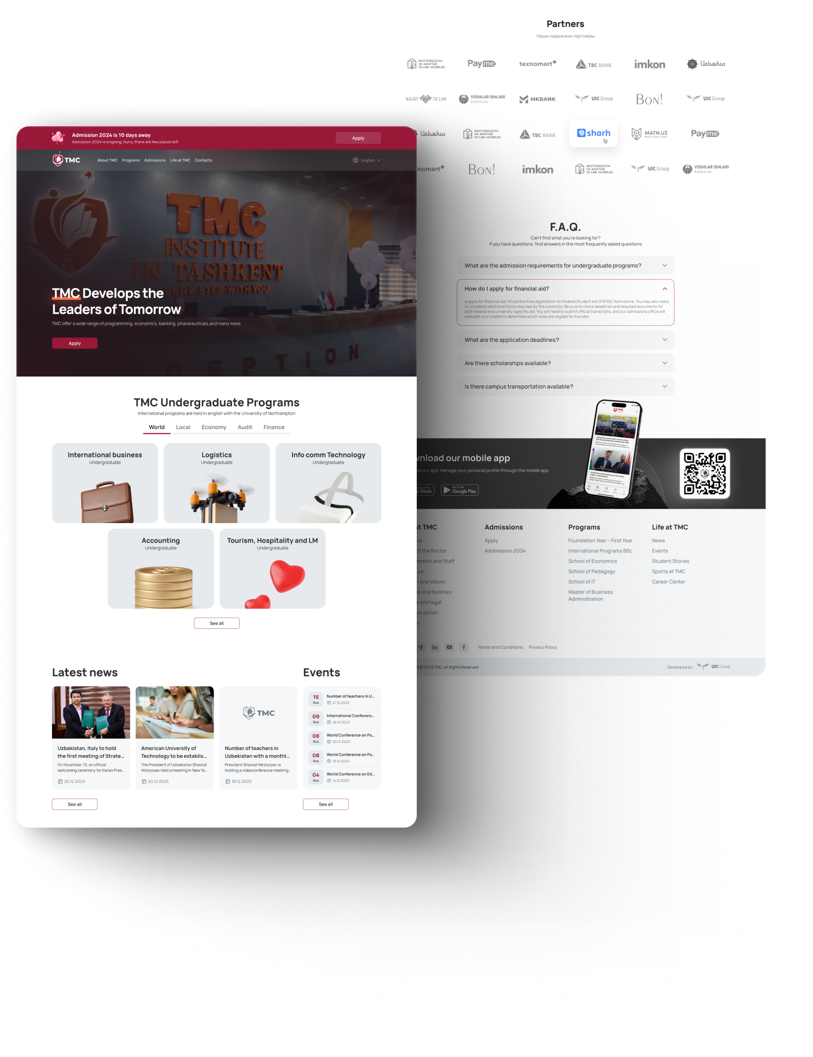 The objective was to design an official website that clearly communicates TMCI University’s academic offerings, admission process, and institutional values. The platform needed to serve both informational and promotional purposes while maintaining a professional and trustworthy tone.
